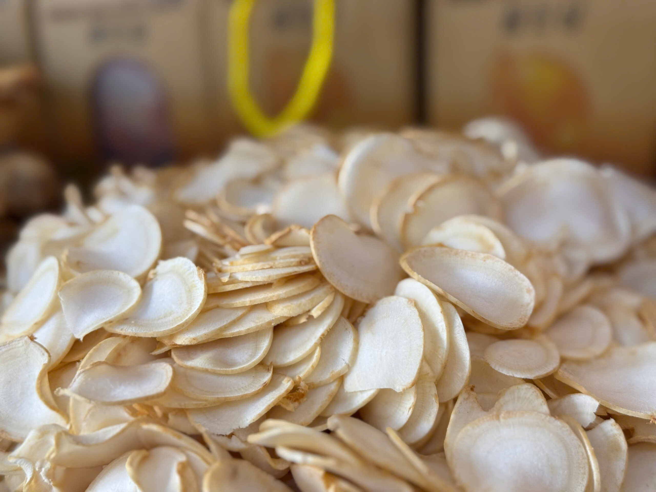 - Cắt lát nhỏ nhân sâm tươi sơ chế theo công thức của Hoa Sâm Korea